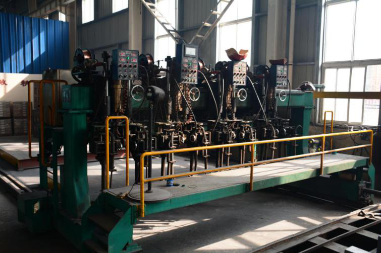 ● 為了提高生產效率及產品質量,公司引進多頭自動焊接機,機體為龍門式結構, 通過安裝在龍門上的7臺焊槍,龍門整體的變頻調速及焊槍對焊縫的機械自動跟蹤 結構,實現了對稱體U型梁進行一個往返全部焊完的效果,焊縫成型號,質量可靠。